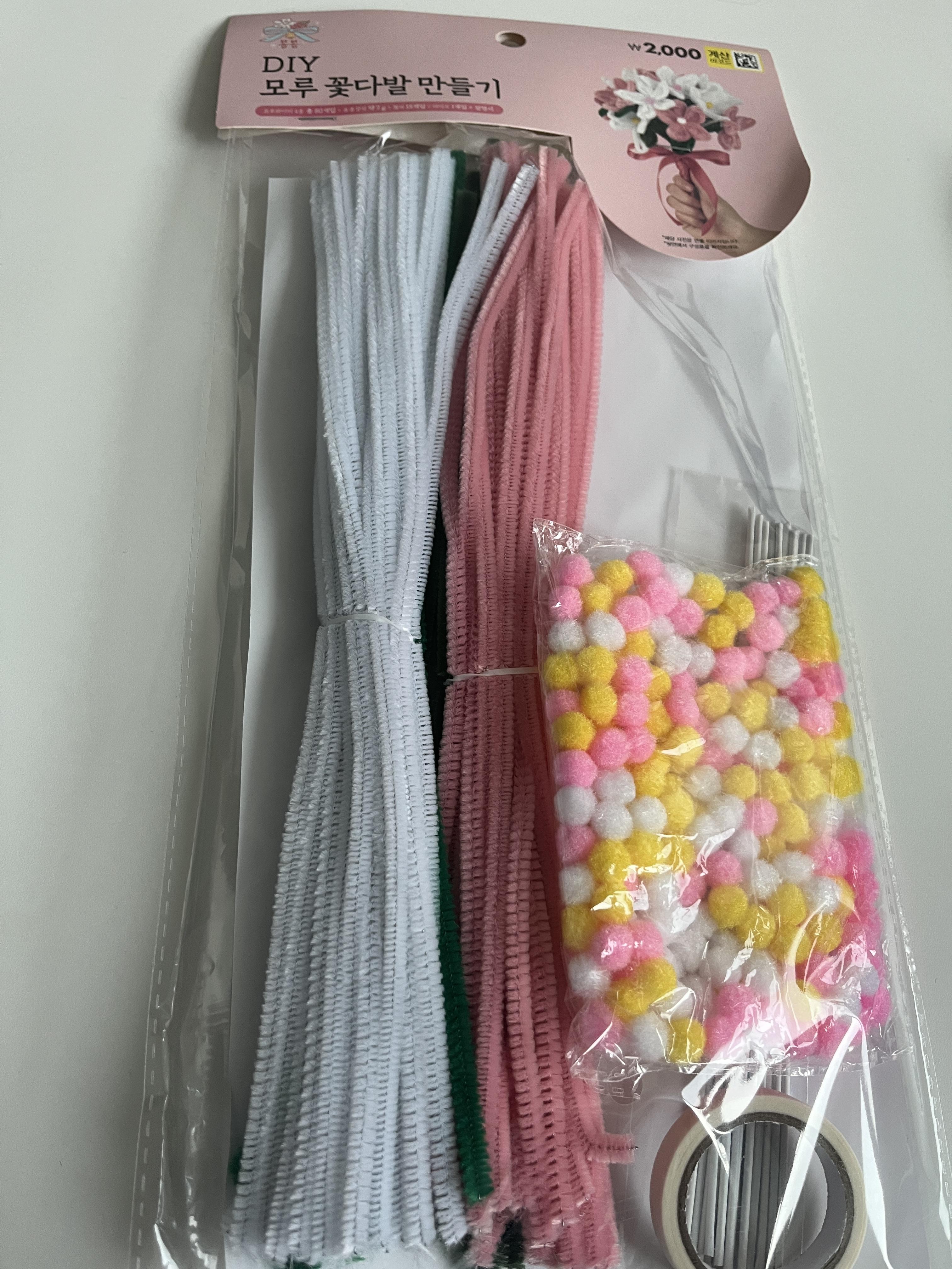 DIY 모루 꽃다발 만들기 소비점수 ⭐️⭐️⭐️ 총 가격 : 2,000원 (품번 : 1049396) GOOD 👍 역시 다이소는 최고다! 2,000원으로 이정도의 재미? 너무 좋다. BAD 👎 원래 모루가 이런건가? 털날림 난리다.