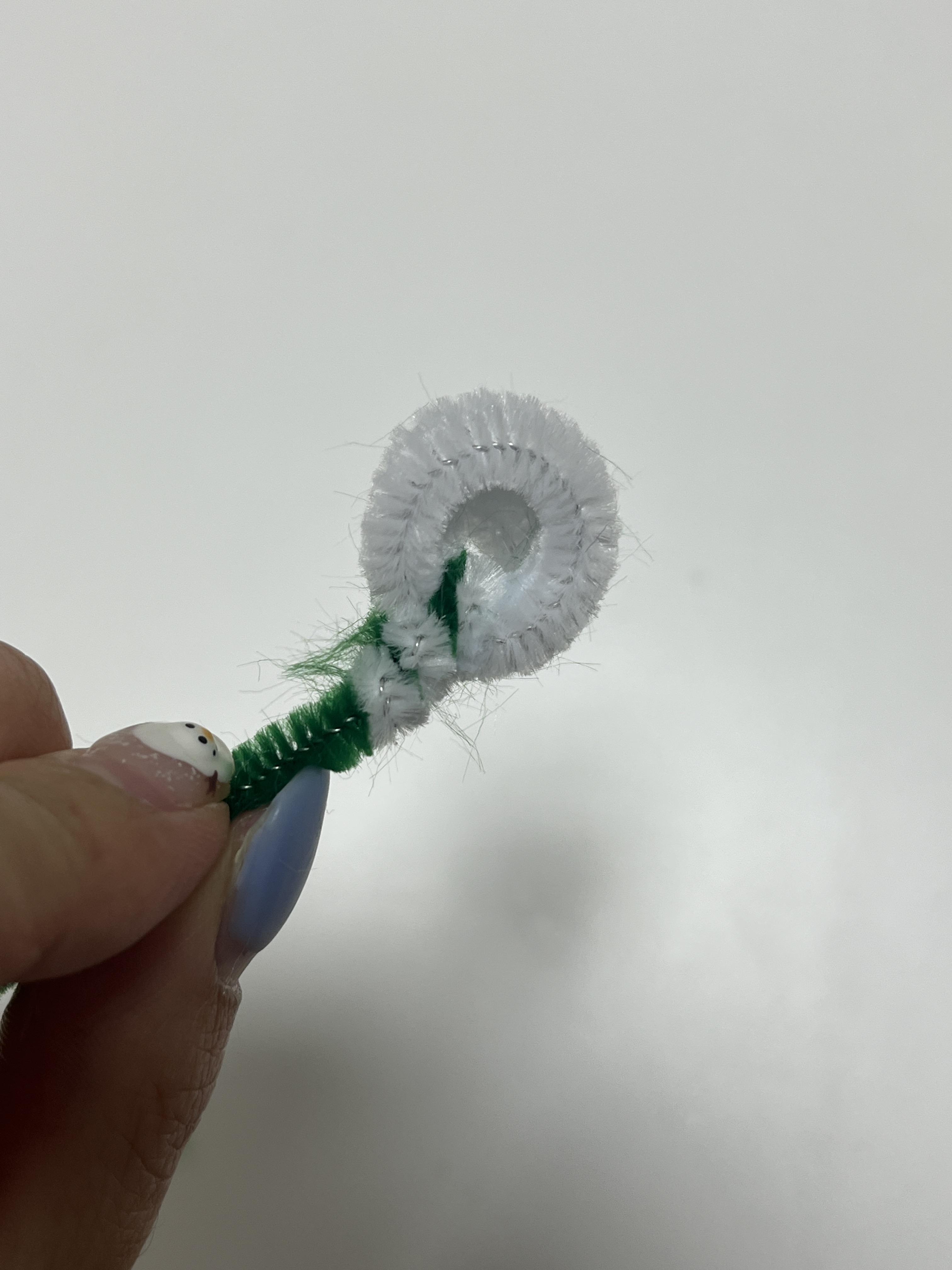 - 초록 모루로 흰색 모루로 고정한다.